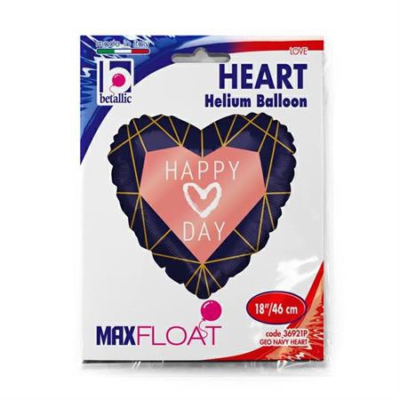 Betallic Folienballon Happy Day Navy Heart 45cm/18"