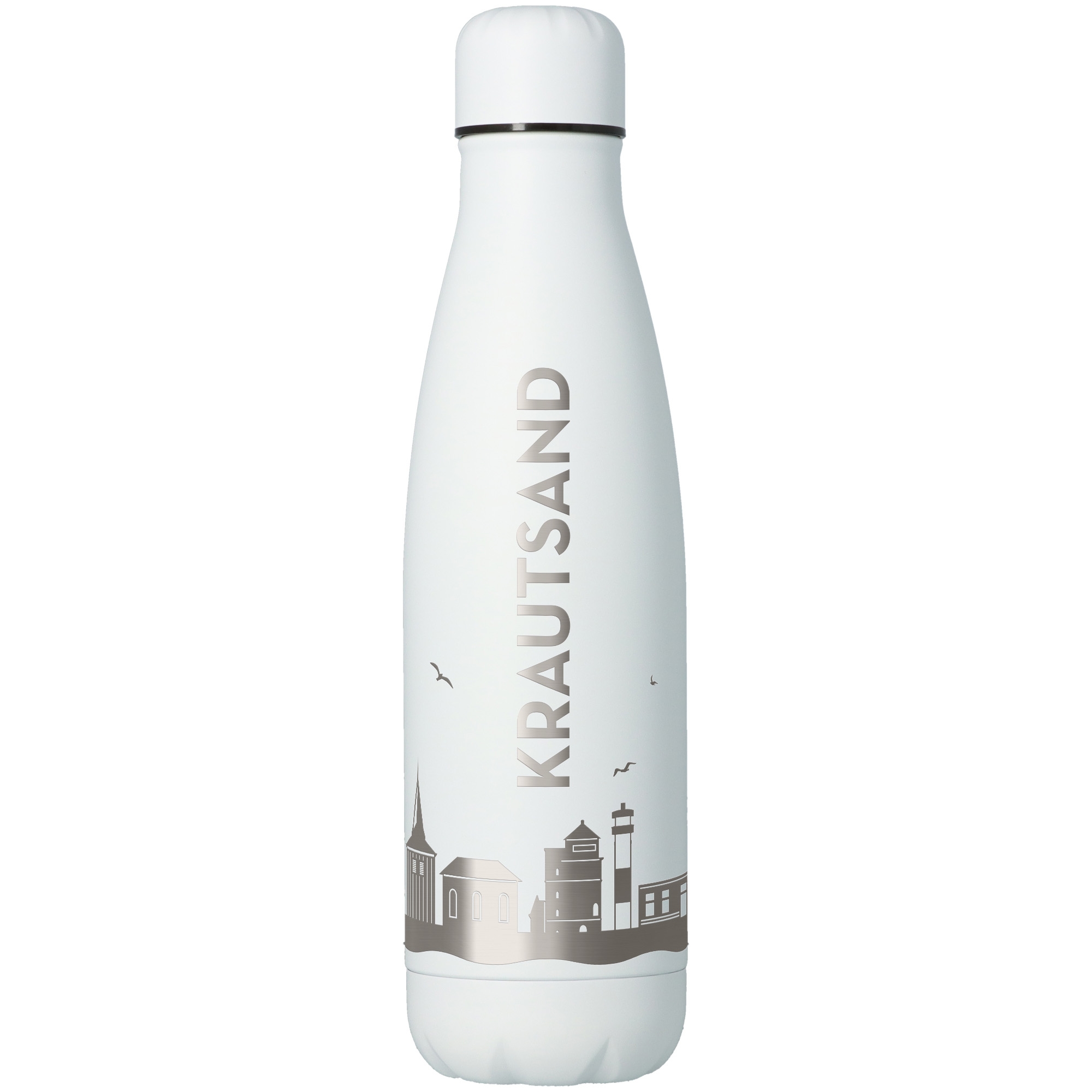 Mit unserer Trinkflasche aus hochwertigem Edelstahl, erlebt man den Flair der Stadt Krautsand den ganzen Tag über.