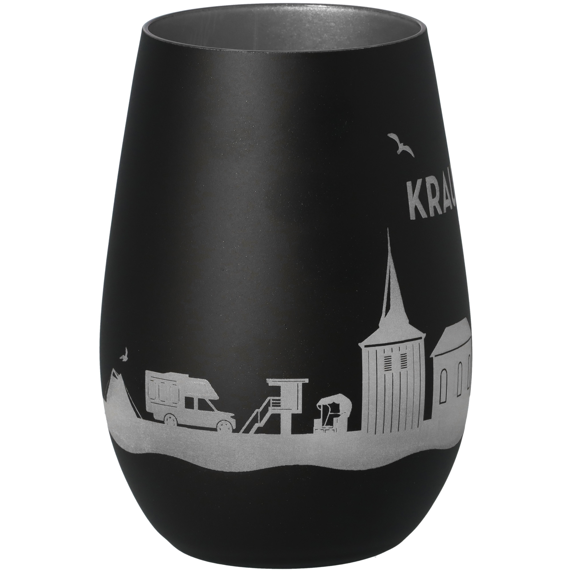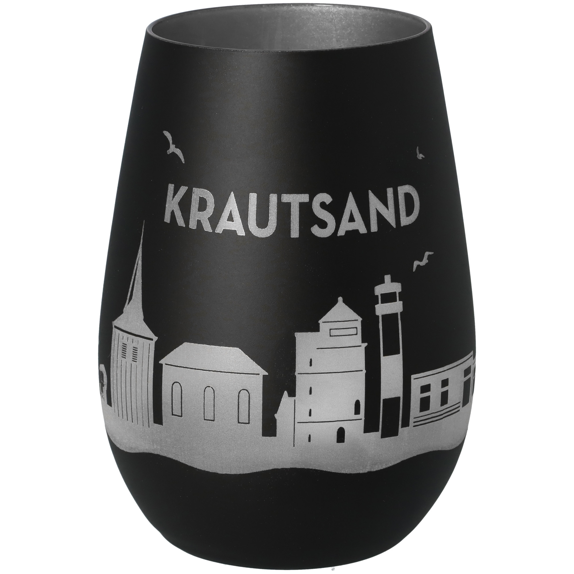 Die perfekte Geschenkidee ist unser Windlicht mit einer rundum Gravur von der Krautsand Skyline, welche mit Kerzenlicht extra heraussticht.