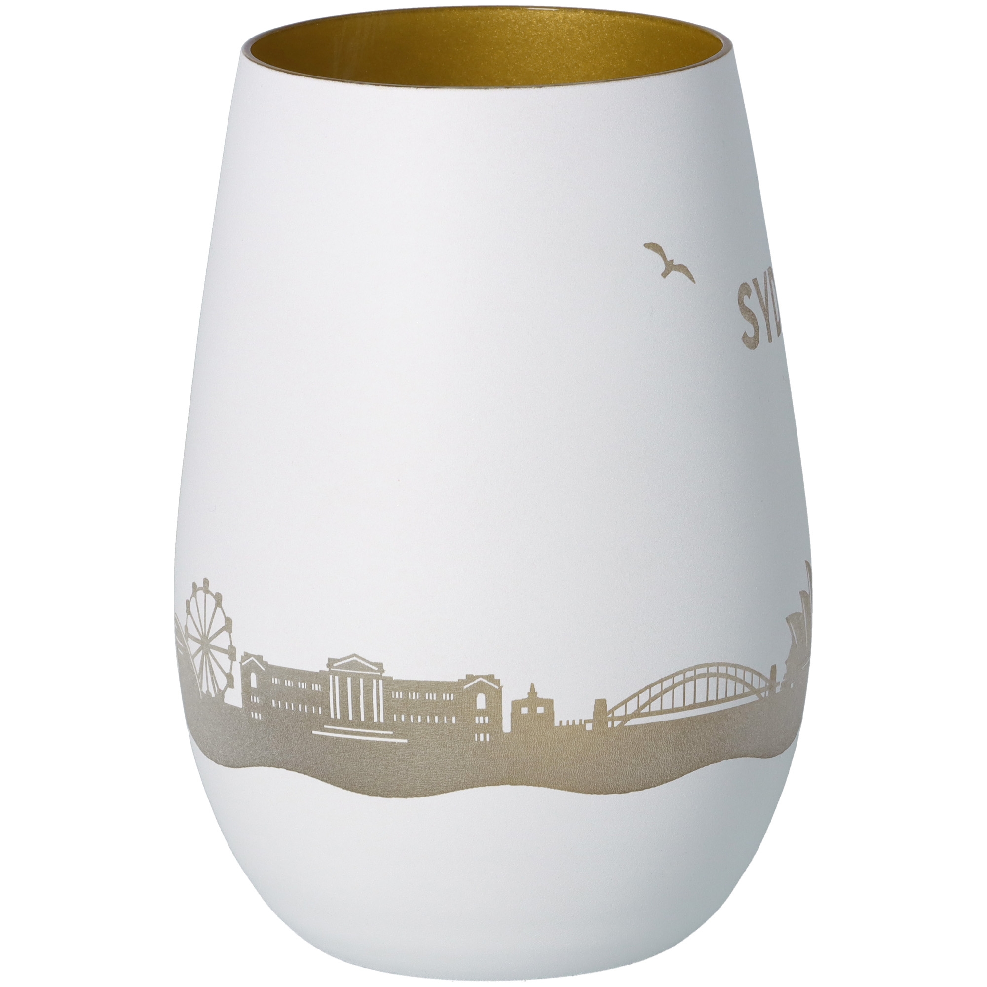Unser stilvolles Windlicht bringt die Sydney Skyline direkt zu dir nach Hause. Die rundum Gravur lässt im Kerzenschein ein faszinierendes Spiel aus Licht und Schatten entstehen – ideal, um eine gemütliche Atmosphäre zu schaffen und Erinnerungen lebendig werden zu lassen.