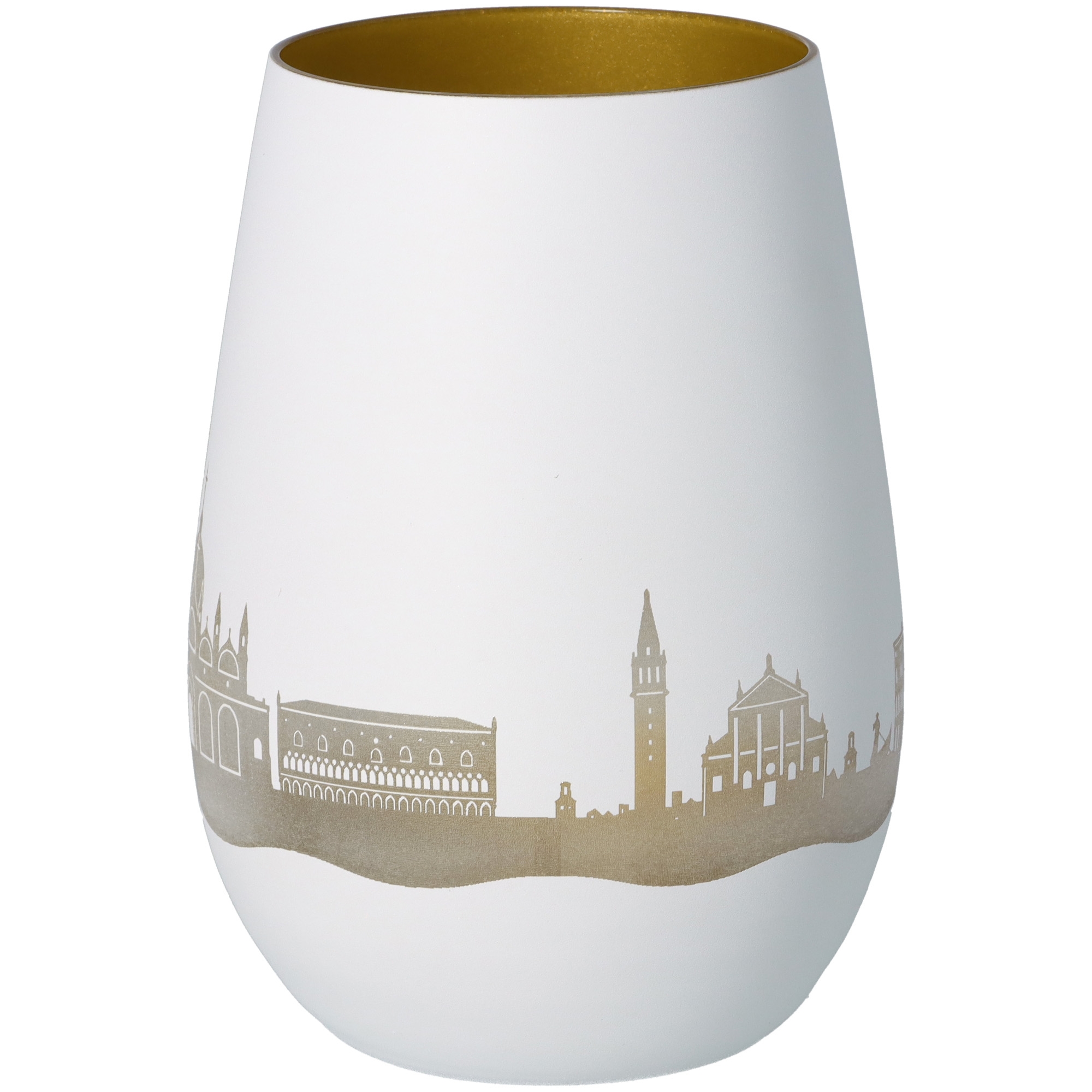 Unser stilvolles Windlicht bringt die Venedig Skyline direkt zu dir nach Hause. Die rundum Gravur lässt im Kerzenschein ein faszinierendes Spiel aus Licht und Schatten entstehen – ideal, um eine gemütliche Atmosphäre zu schaffen und Erinnerungen lebendig werden zu lassen.