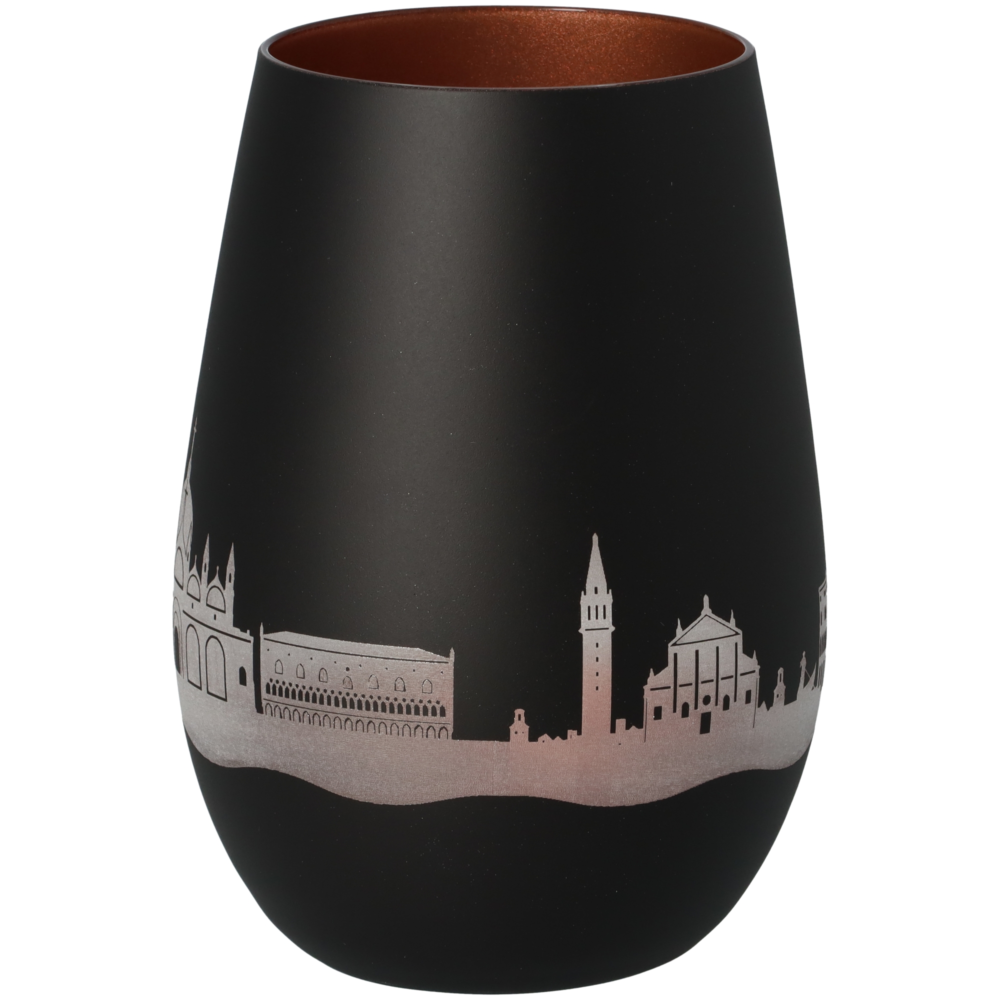 Unser stilvolles Windlicht bringt die Venedig Skyline direkt zu dir nach Hause. Die rundum Gravur lässt im Kerzenschein ein faszinierendes Spiel aus Licht und Schatten entstehen – ideal, um eine gemütliche Atmosphäre zu schaffen und Erinnerungen lebendig werden zu lassen.