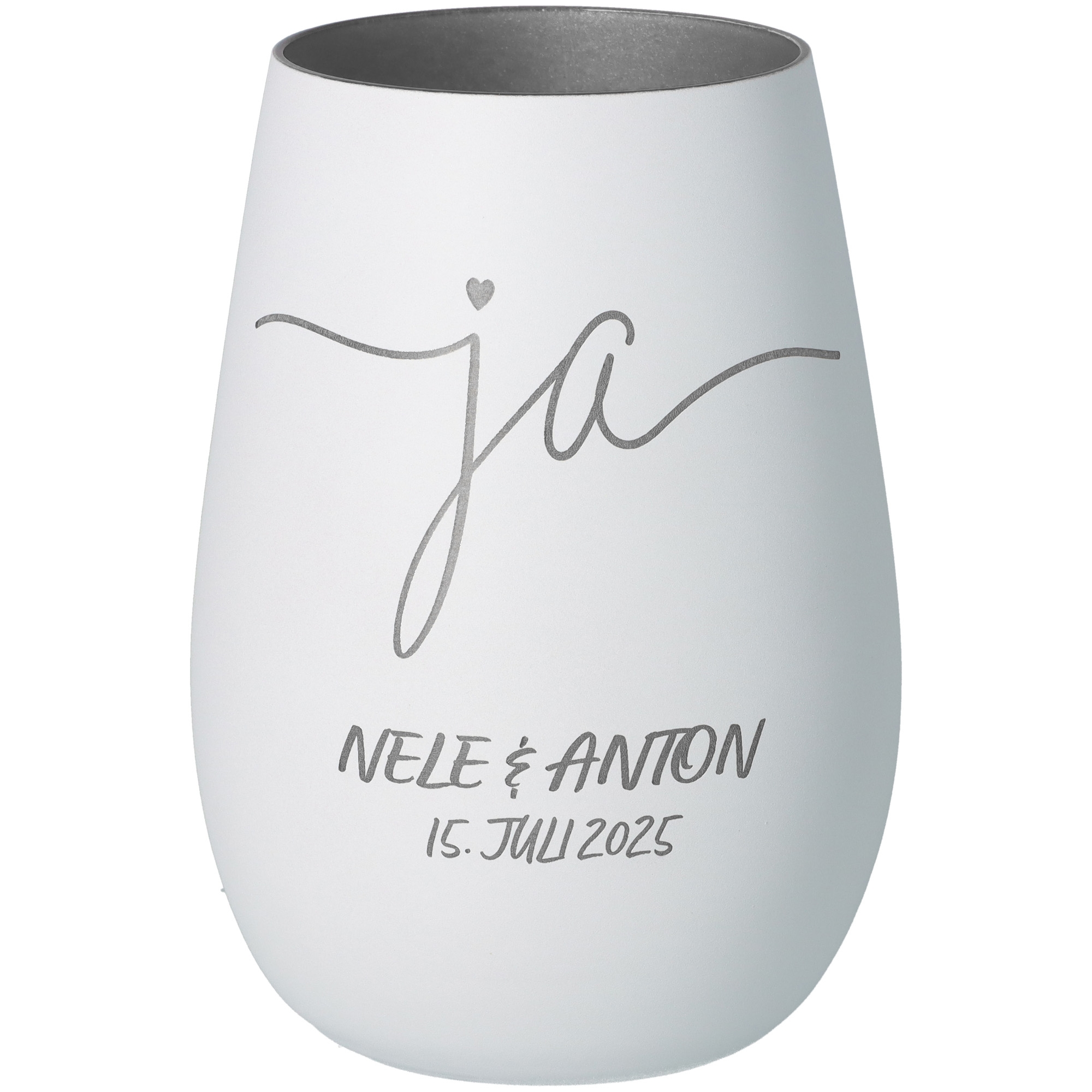 Windlicht „Ja“ – personalisierbar für die Hochzeit