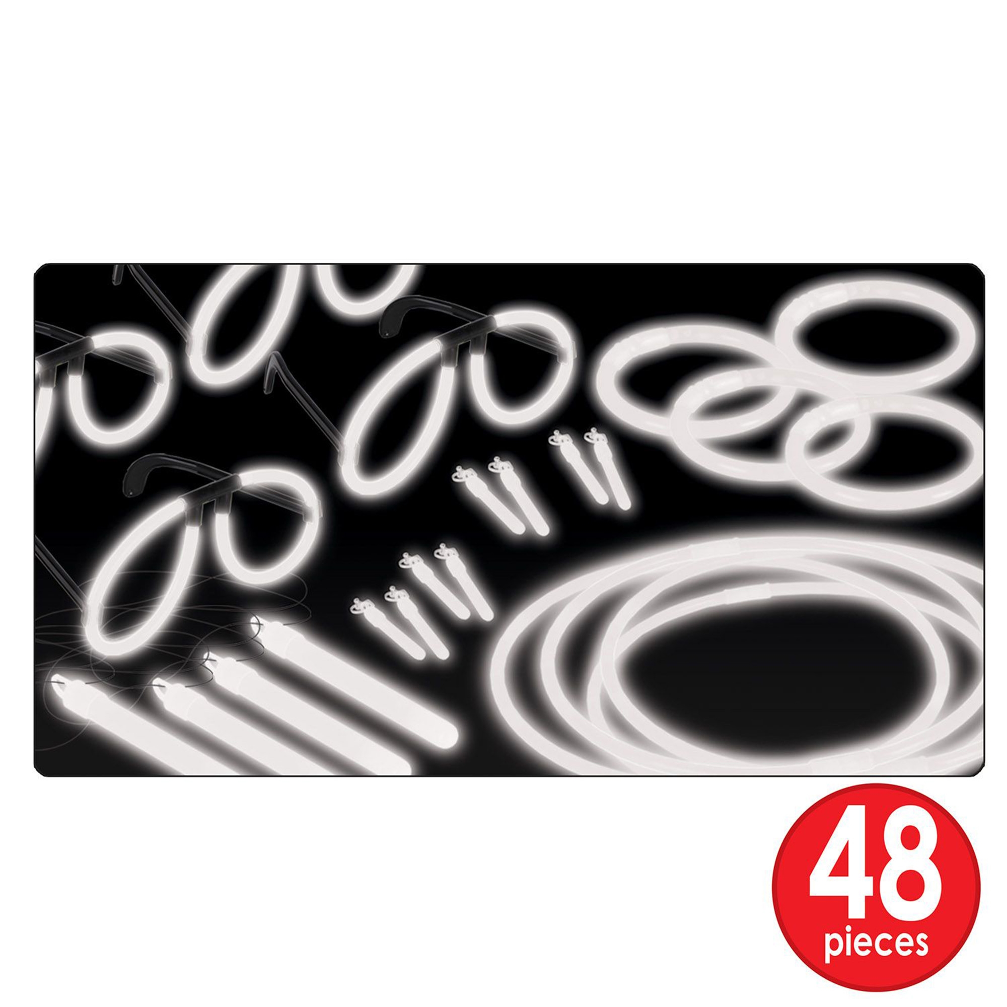 - 48 Leuchtzubehör (8 Leuchtbrillen, 8 Leuchtohrringe, 16 Leuchtarmbänder, 8 Leuchtstäbe, 8 Leuchtketten)