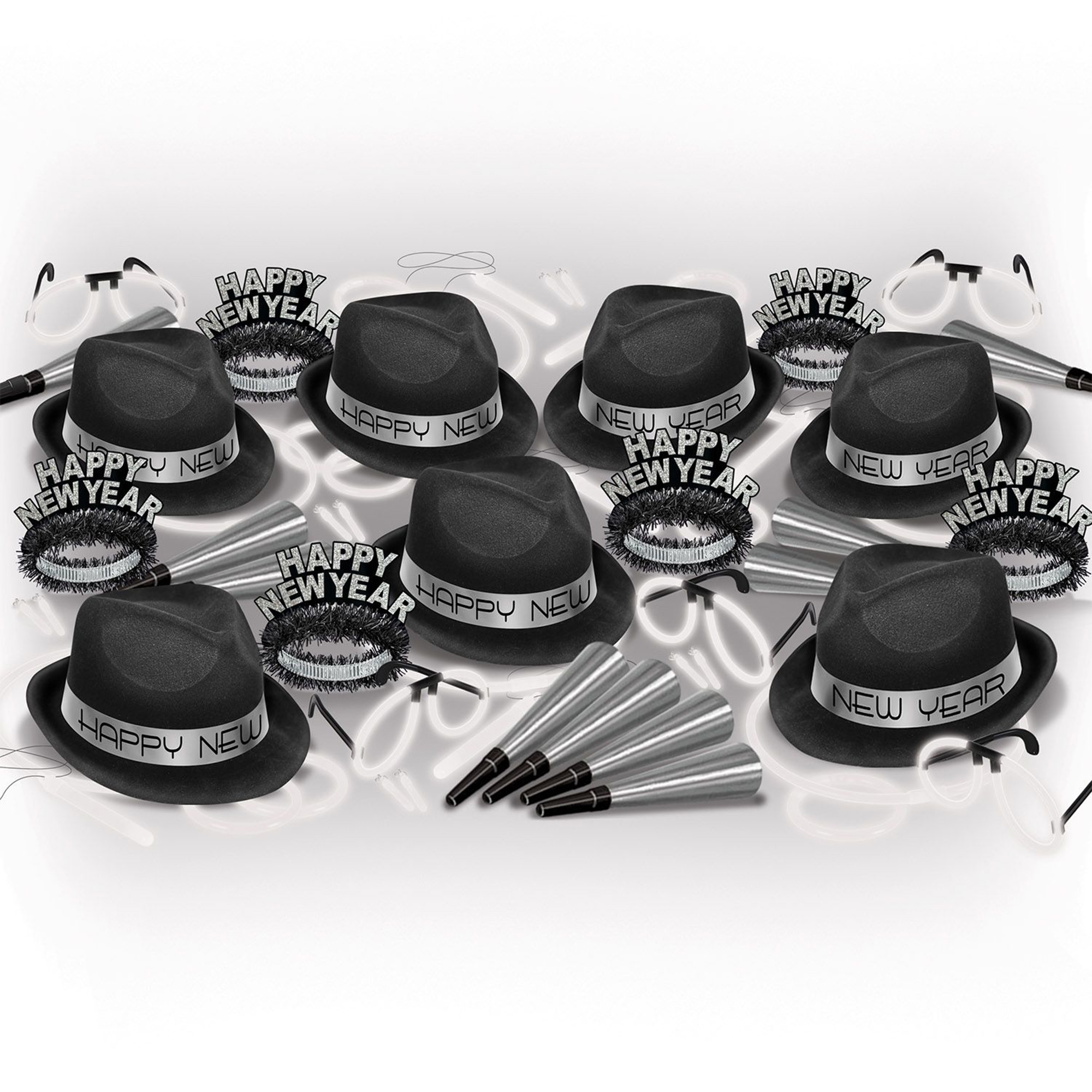Beistle Partybox Silvester "Glow Silber" Schwarz/Silber 50 Personen