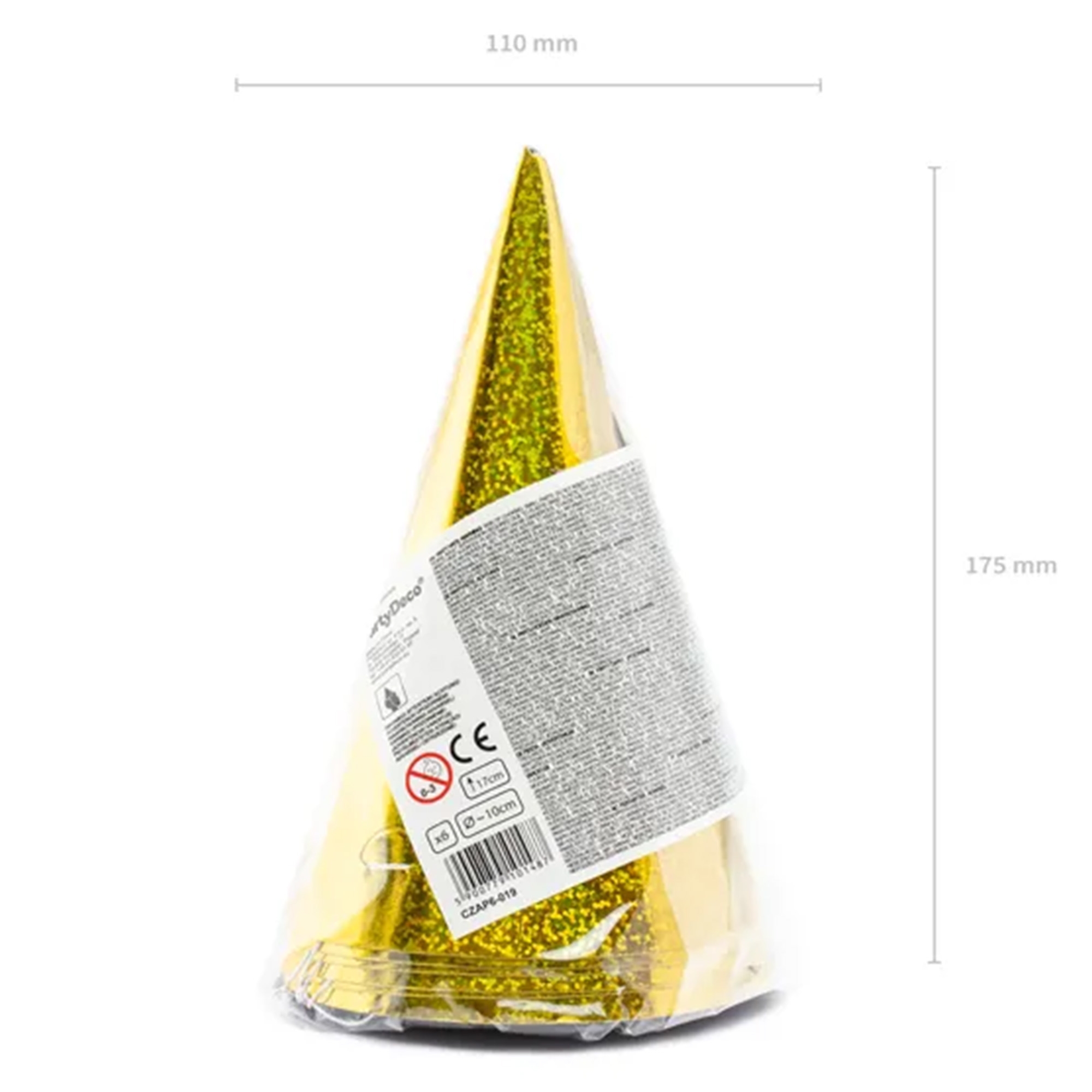 Partydeco 6 Holografische Partyhüte "Gold" 16 cm