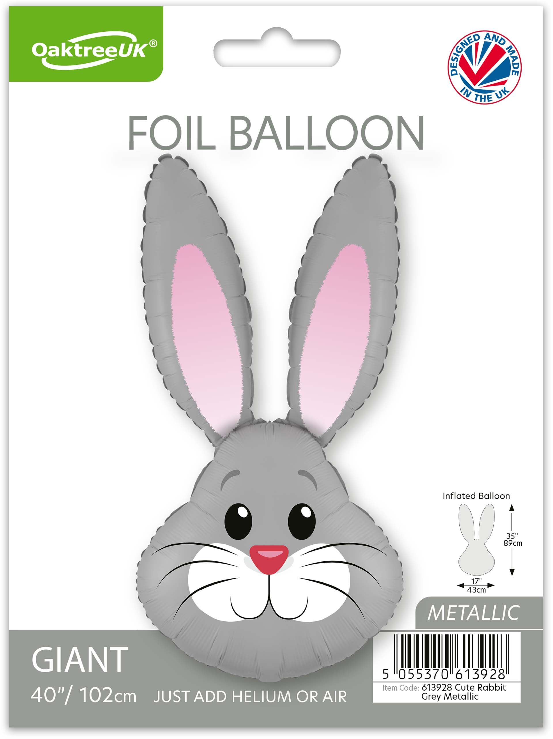 Folienballon niedlicher Hase Grau 100cm