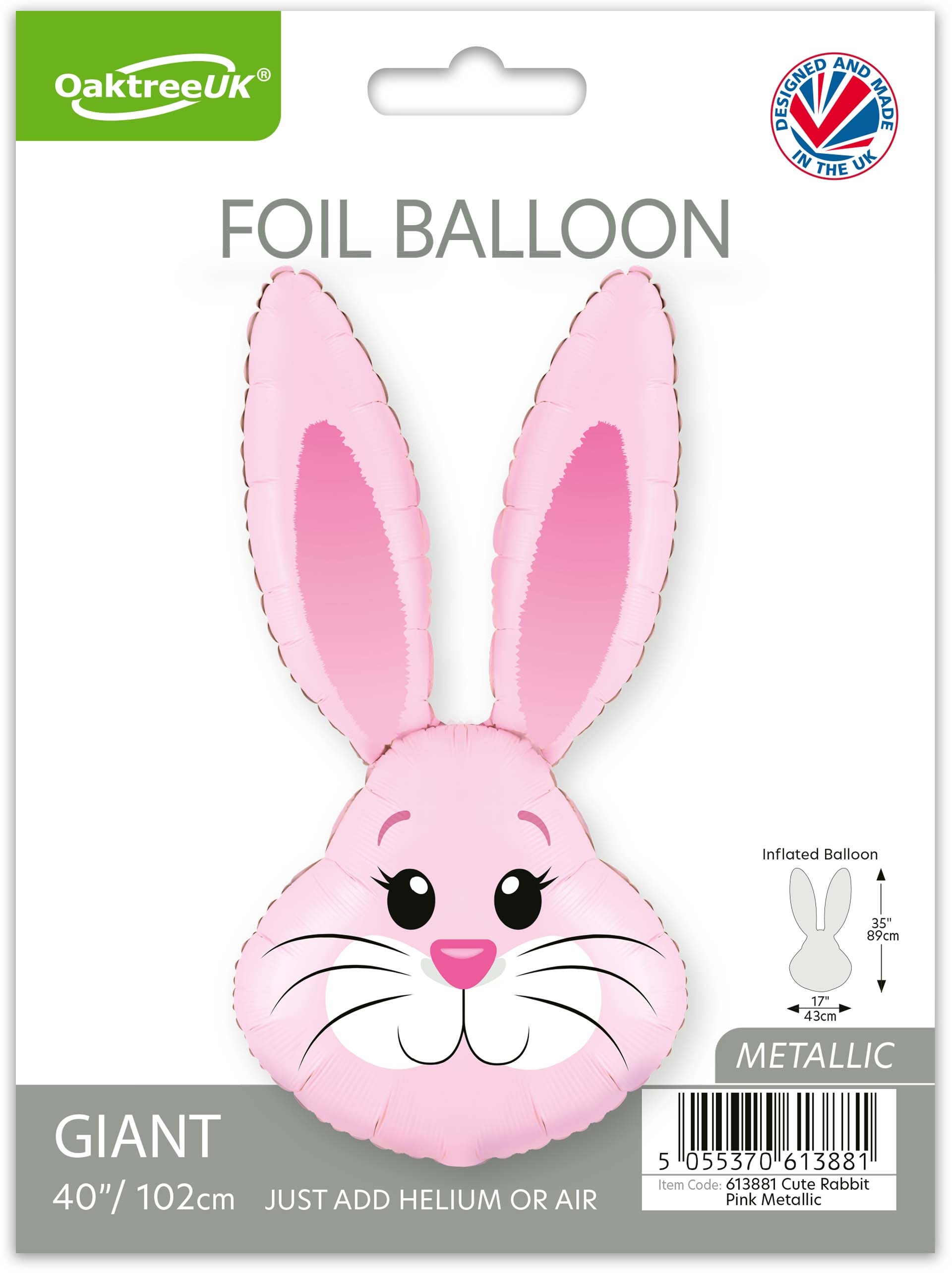 Folienballon niedlicher Hase Rosa 100cm